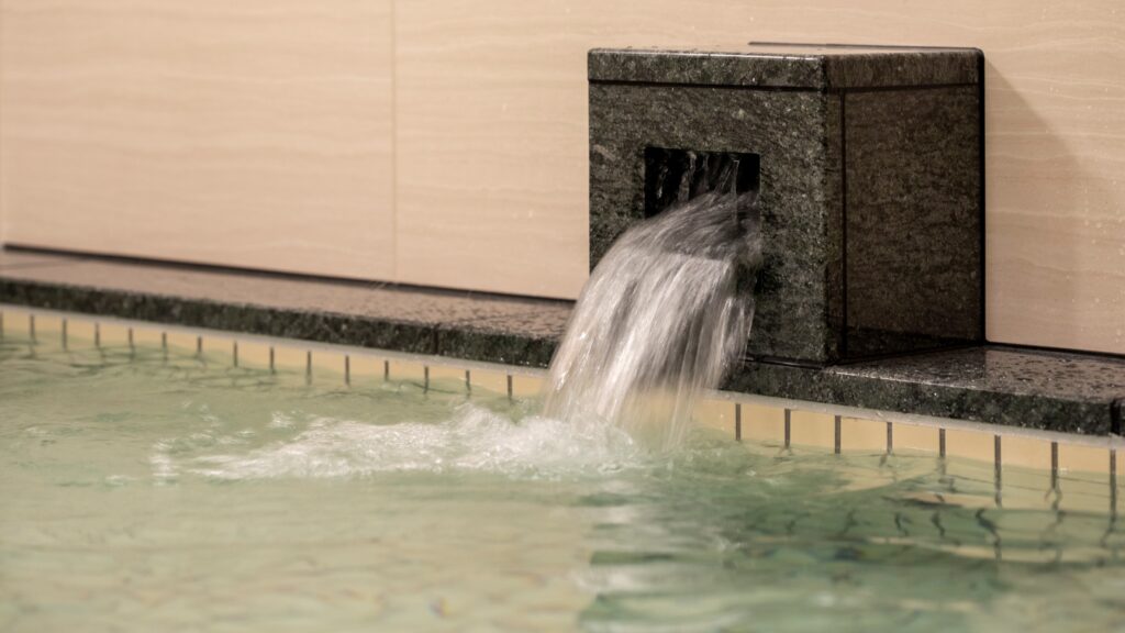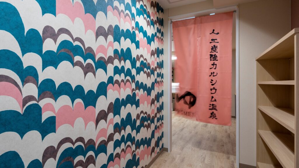 館内には肩こり・腰痛・神経痛などに効果が期待できる二股炭酸カルシウム温泉を利用した人工温泉大浴場をご用意いたしております(無料)。