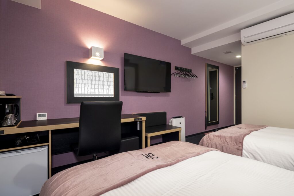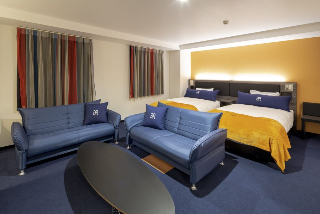 - 液晶TV:50型、BS放送(無料)、VODシアター【500タイトル】(有料)、イオンドライヤー、フェイスタオル、バスタオル、バスマット、フェイスウォッシュ&シェービング、ボディーソープ、シャンプー・コンディショナー、冷蔵庫(空)、ケトル、温水洗浄機付きトイレ、ソファーベッド、他