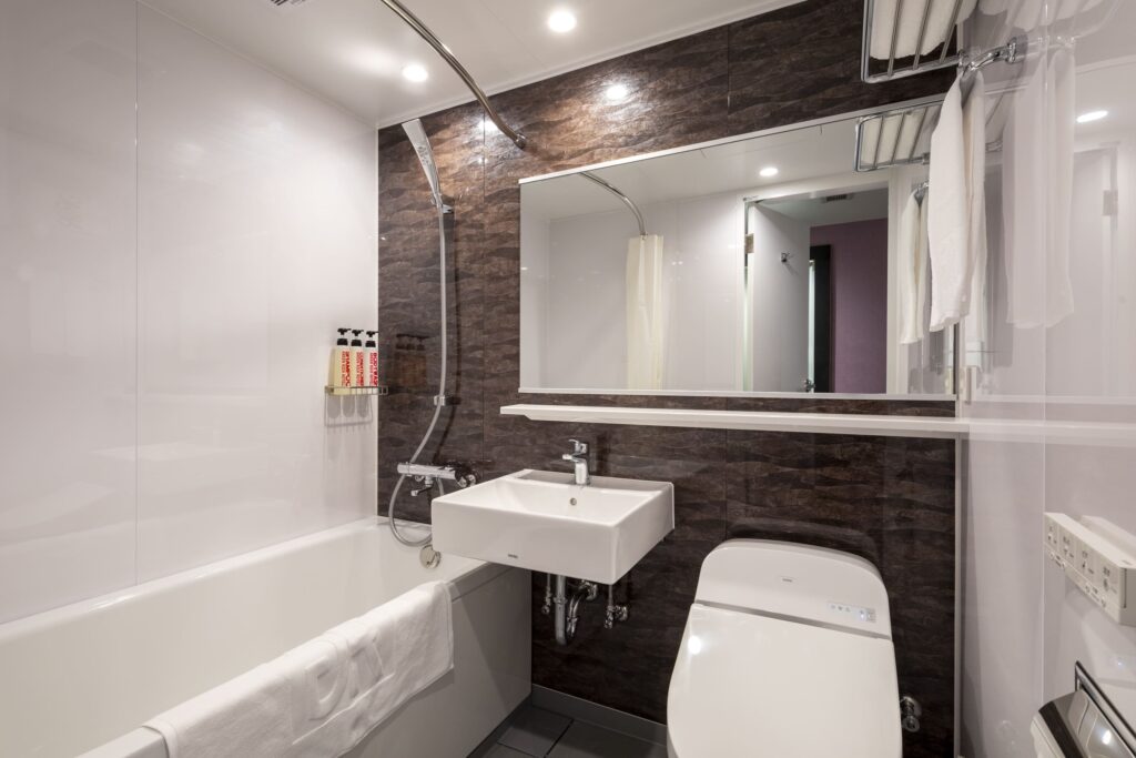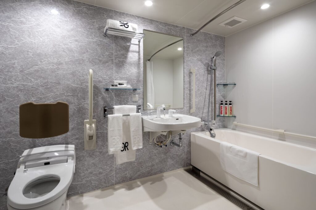 - 液晶TV:40型、BS放送(無料)、VODシアター【500タイトル】(有料)、イオンドライヤー、フェイスタオル、バスタオル、バスマット、フェイスウォッシュ&シェービング、ボディーソープ、シャンプー・コンディショナー、冷蔵庫(空)、ケトル、温水洗浄機付きトイレ、他