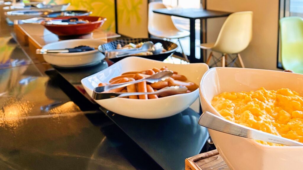 ご朝食は和食・洋食メニューが食べ放題のバイキング形式となっております。