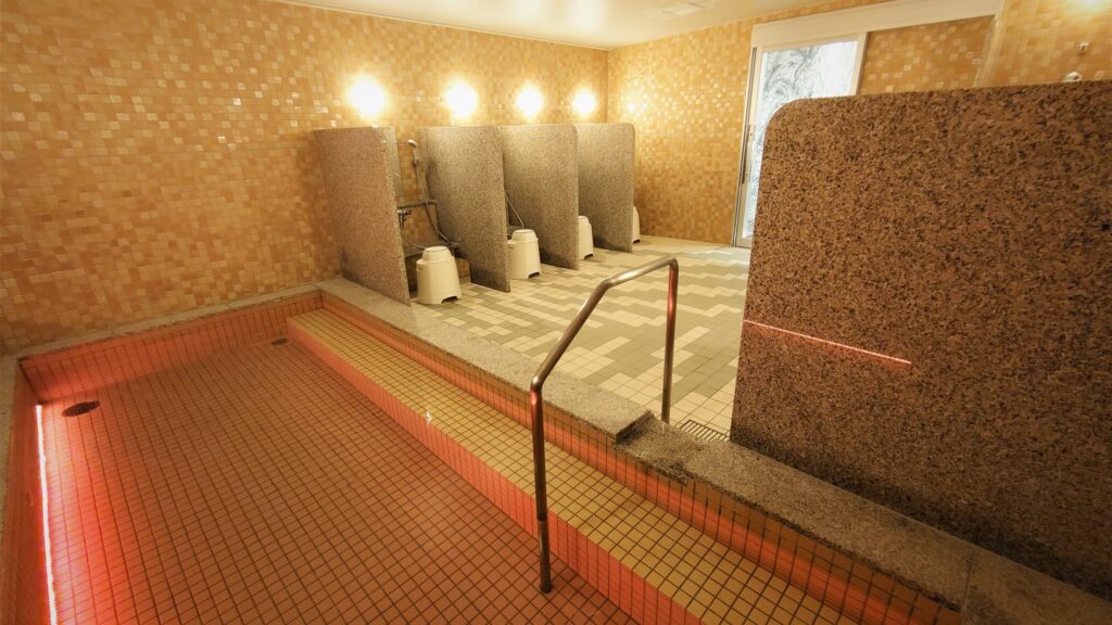 館内には肩こり・腰痛・神経痛などに効果が期待できる二股炭酸カルシウム温泉を利用した人工温泉大浴場をご用意いたしております(無料)。