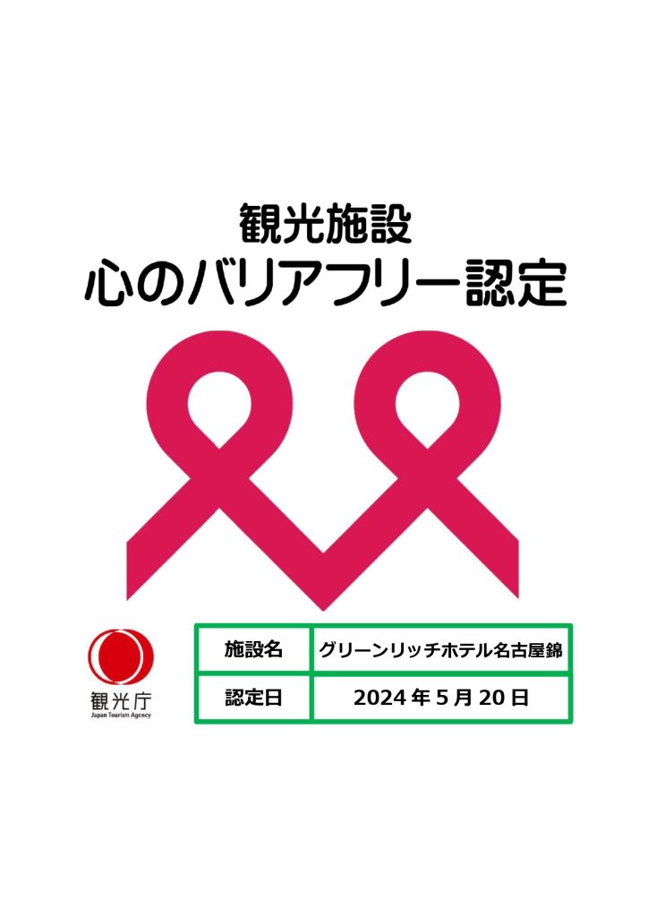 「観光施設における心のバリアフリー認定制度」に認定されました