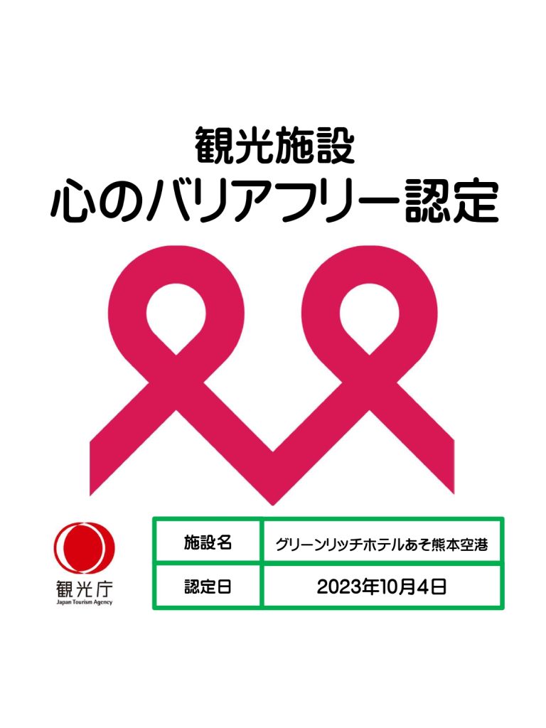 「観光施設における心のバリアフリー認定制度」に認定されました