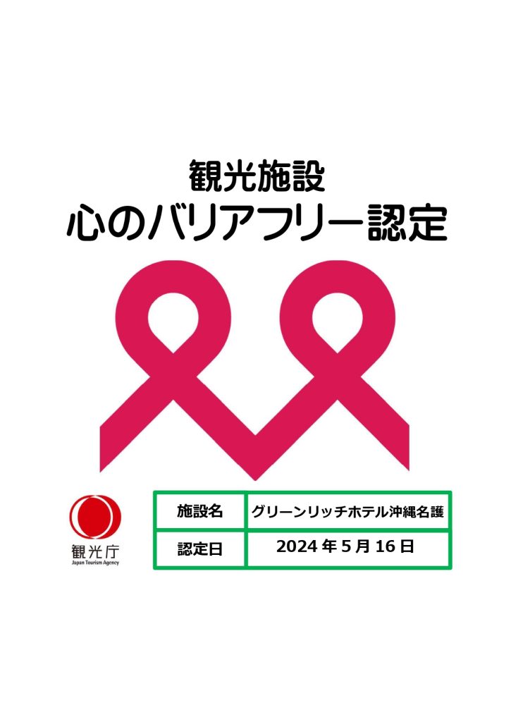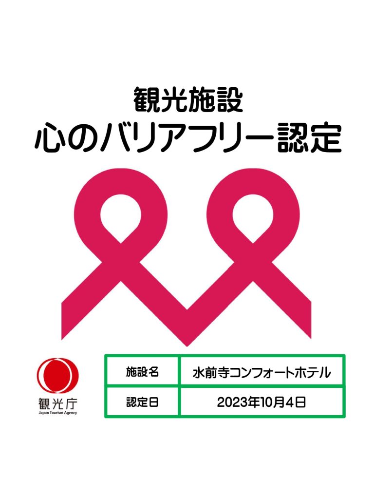 「観光施設における心のバリアフリー認定制度」に認定されました。