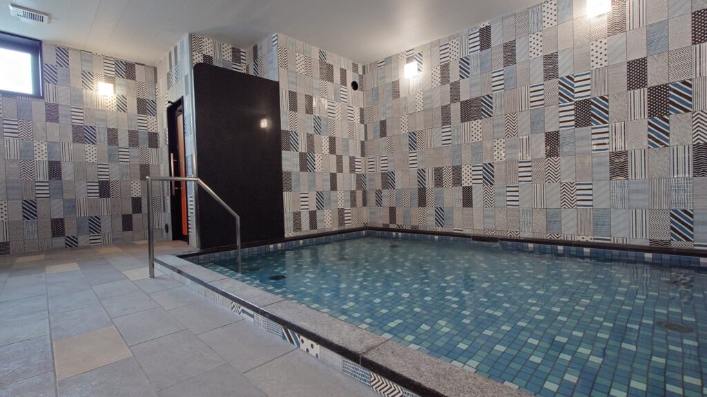 館内には肩こり・腰痛・神経痛などに効果が期待できる二股炭酸カルシウム温泉を利用した人工温泉大浴場をご用意いたしております(無料)。