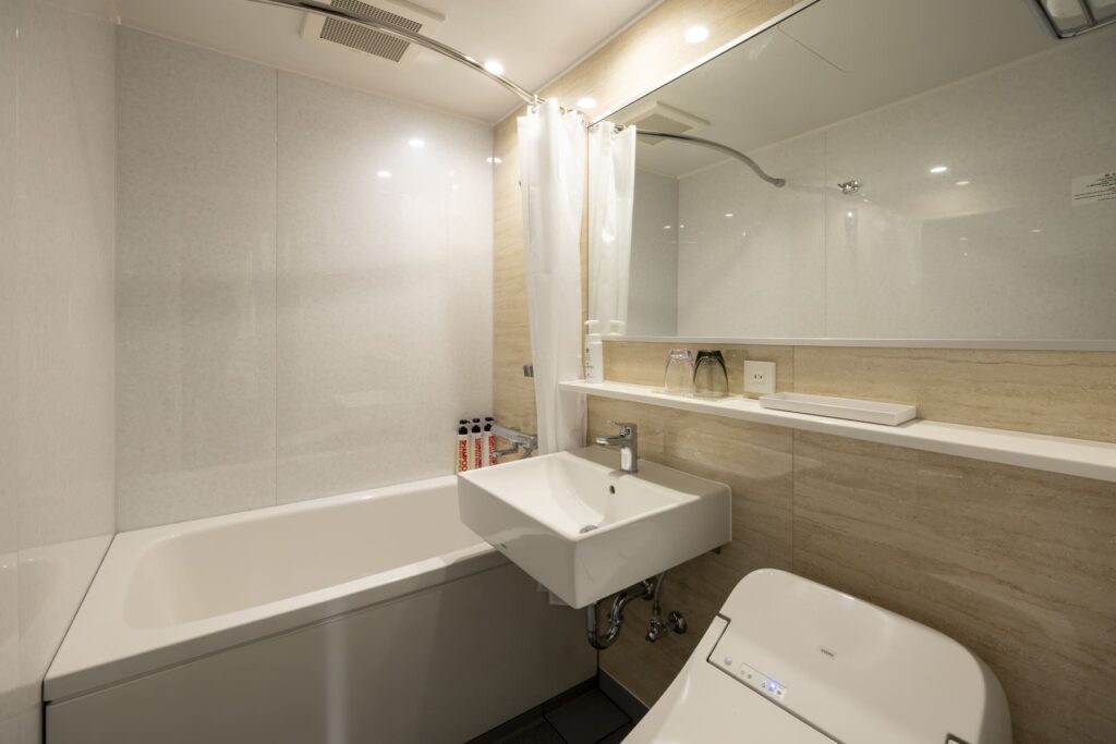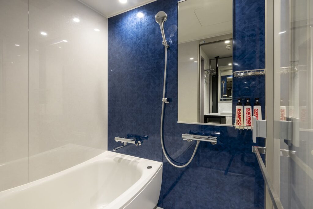 - 液晶TV:42型、BS放送(無料)、VODシアター【500タイトル】(有料)、イオンドライヤー、フェイスタオル、バスタオル、バスマット、ボディーソープ、シャンプー・コンディショナー、フェイスソープ、冷蔵庫(空)、ケトル、加湿空気清浄機、温水洗浄機付きトイレ、シャワーブース・洗面台・トイレ3点独立仕様 ※バスタブなし、他
