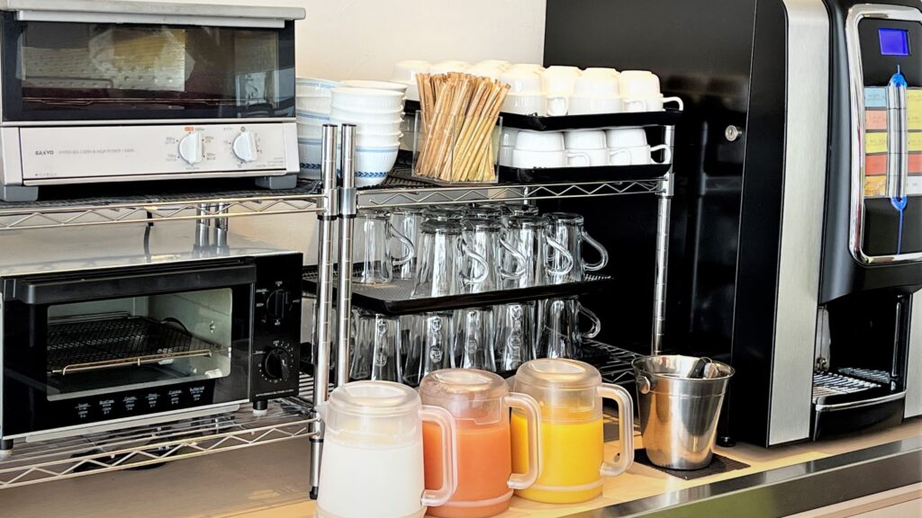 - 大型液晶ワイドTV、BS放送(無料)、VODシアター(有料)、イオンドライヤー、フェイスタオル、バスタオル、バスマット、フェイスウォッシュ&シェービング、ボディーソープ、シャンプ-・コンディショナー、冷蔵庫(空)、バスルーム(ユニバーサルタイプ)・洗浄機付温便座トイレ、電気ケトル、加湿空気清浄機 他